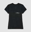Estampa minimalista e temática, apresentando a tag de fechamento $</\text{dev}>$ (alusão à tag HTML para desenvolvimento) em fonte clean e cor contrastante. A estampa é posicionada de forma sutil no peito (lado esquerdo), perfeita para um impacto visual discreto e cheio de significado.