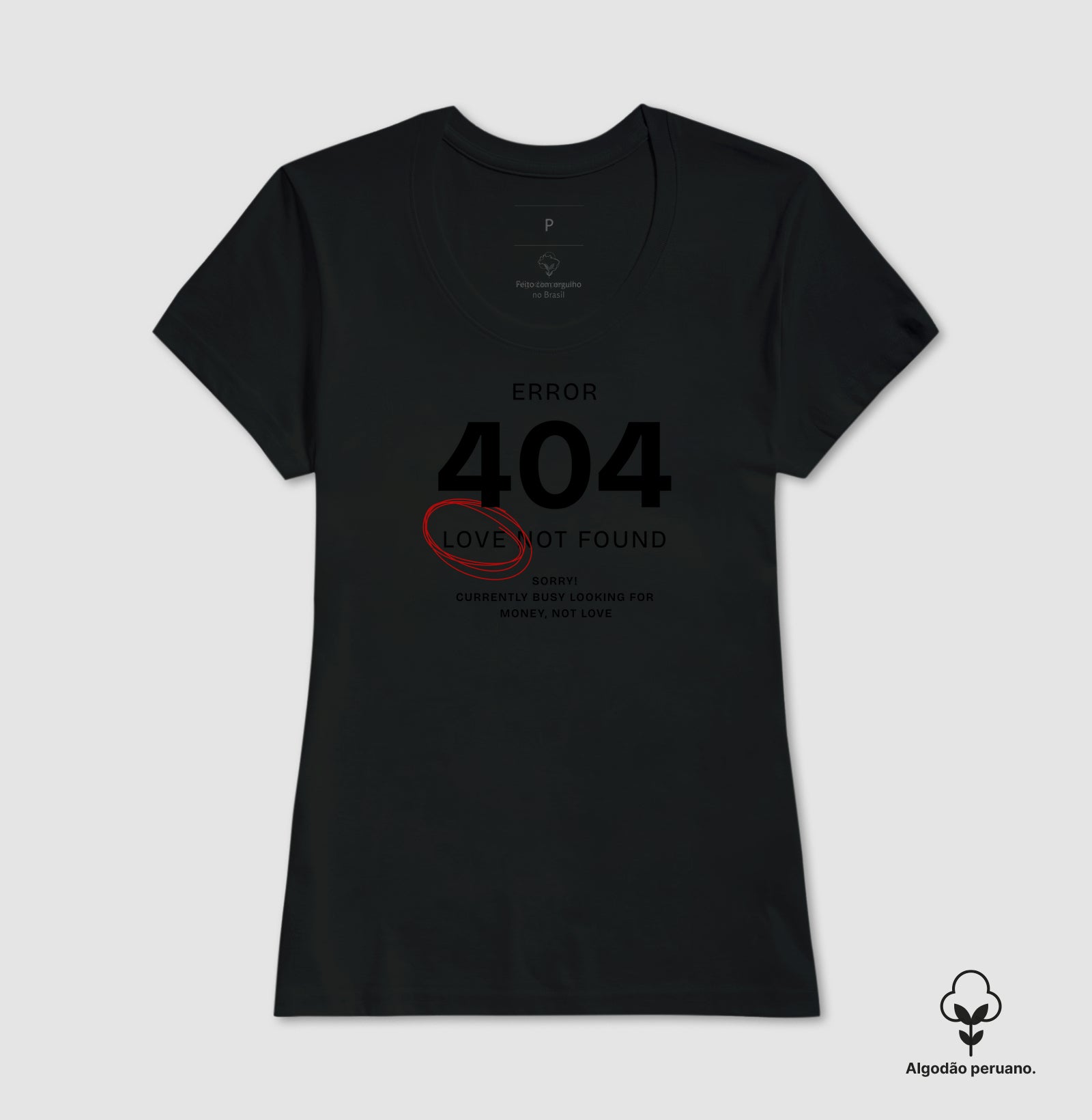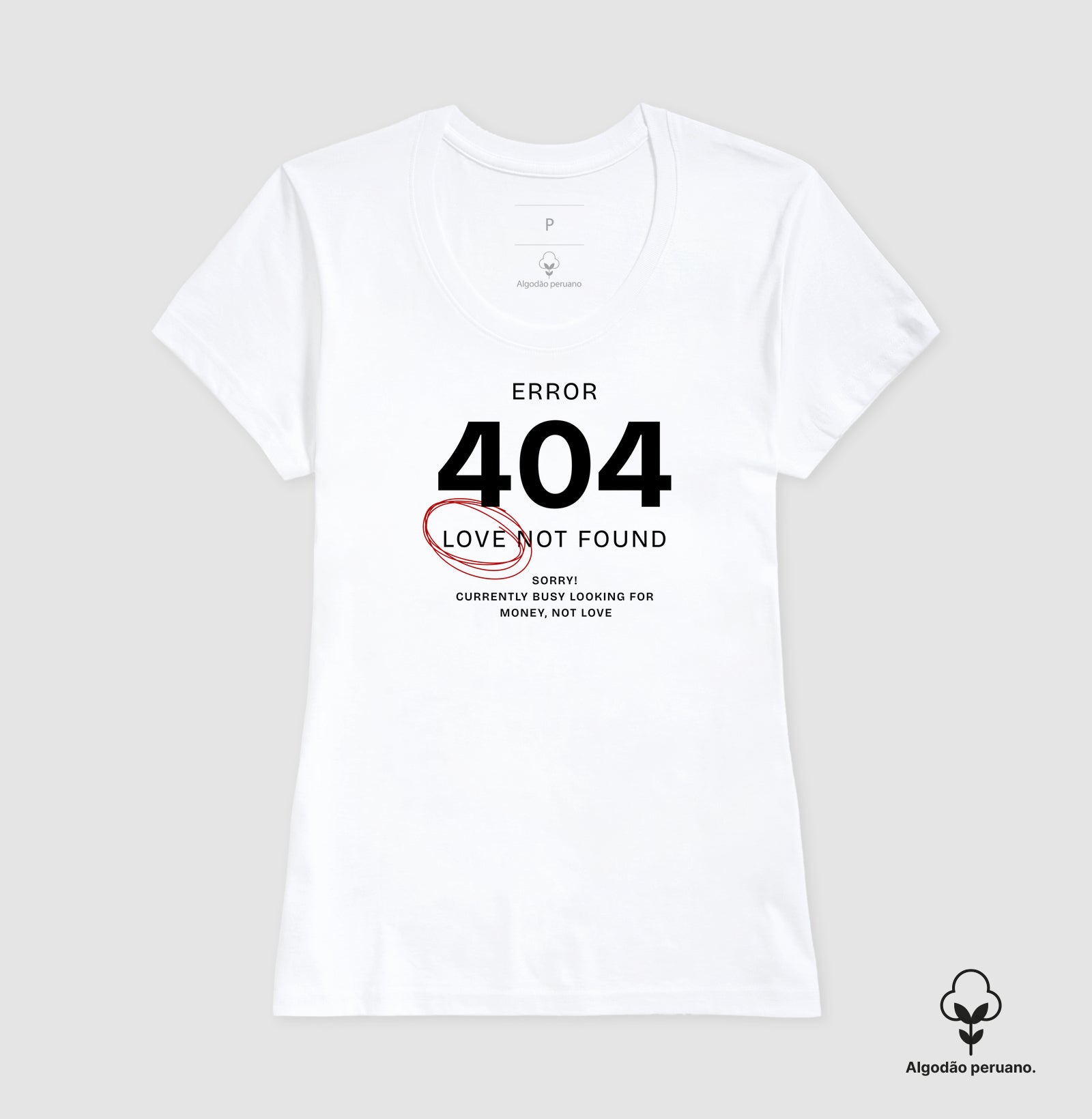 Camiseta Premium "404 – Love Not Found" – Humor Geek com Estilo A Camiseta Premium "404 – Love Not Found" é perfeita para quem curte tecnologia, sarcasmo e bom humor no visual. Inspirada no famoso erro de rede, essa peça une criatividade e personalidade de forma divertida e descolada. Detalhes da peça: Confeccionada em 100% algodão peruano, garantindo maciez, durabilidade e conforto premium Modelagem tradicional, com caimento clássico que se adapta facilmente a diferentes estilos Gola arredondada e mangas curtas, práticas e versáteis para o dia a dia Estampa criativa em alta definição, com a mensagem "Error 404 – Love Not Found", ideal para quem gosta de expressar humor geek Design exclusivo que combina tecnologia, ironia e estilo urbano Produção 100% brasileira, feita sob demanda em máquinas de última geração, especialmente para você.