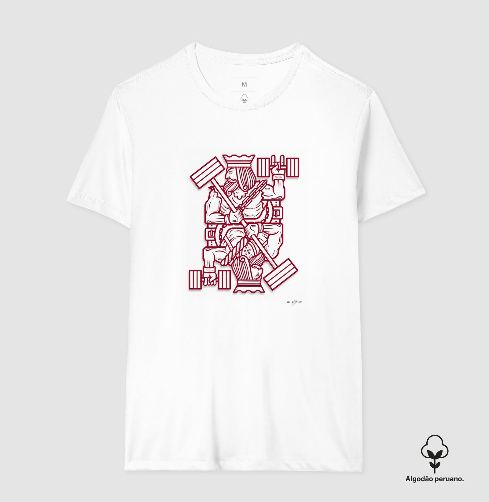 Estampa central e ousada, que estiliza a figura de um Rei (ou Valete) de baralho com elementos de academia. O design em traço único apresenta a figura do Rei segurando pesos e halteres, unindo a realeza ao esporte.