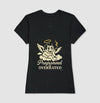 Estampa central e ousada, em estilo de desenho animado vintage. Apresenta um anjo sentado confortavelmente em uma nuvem, fumando um cigarro. Abaixo, a frase "PROGRAMMED IS OVERRATED" (Ser Programado é Superestimado) sugere uma atitude de desprendimento das expectativas sociais e das regras.