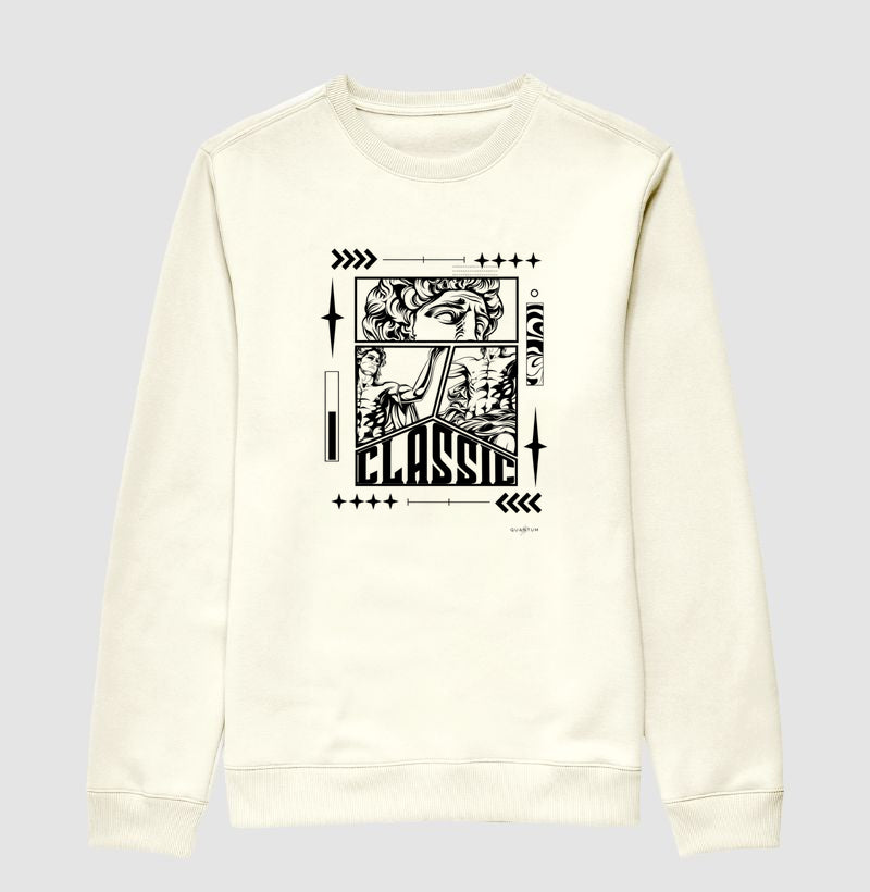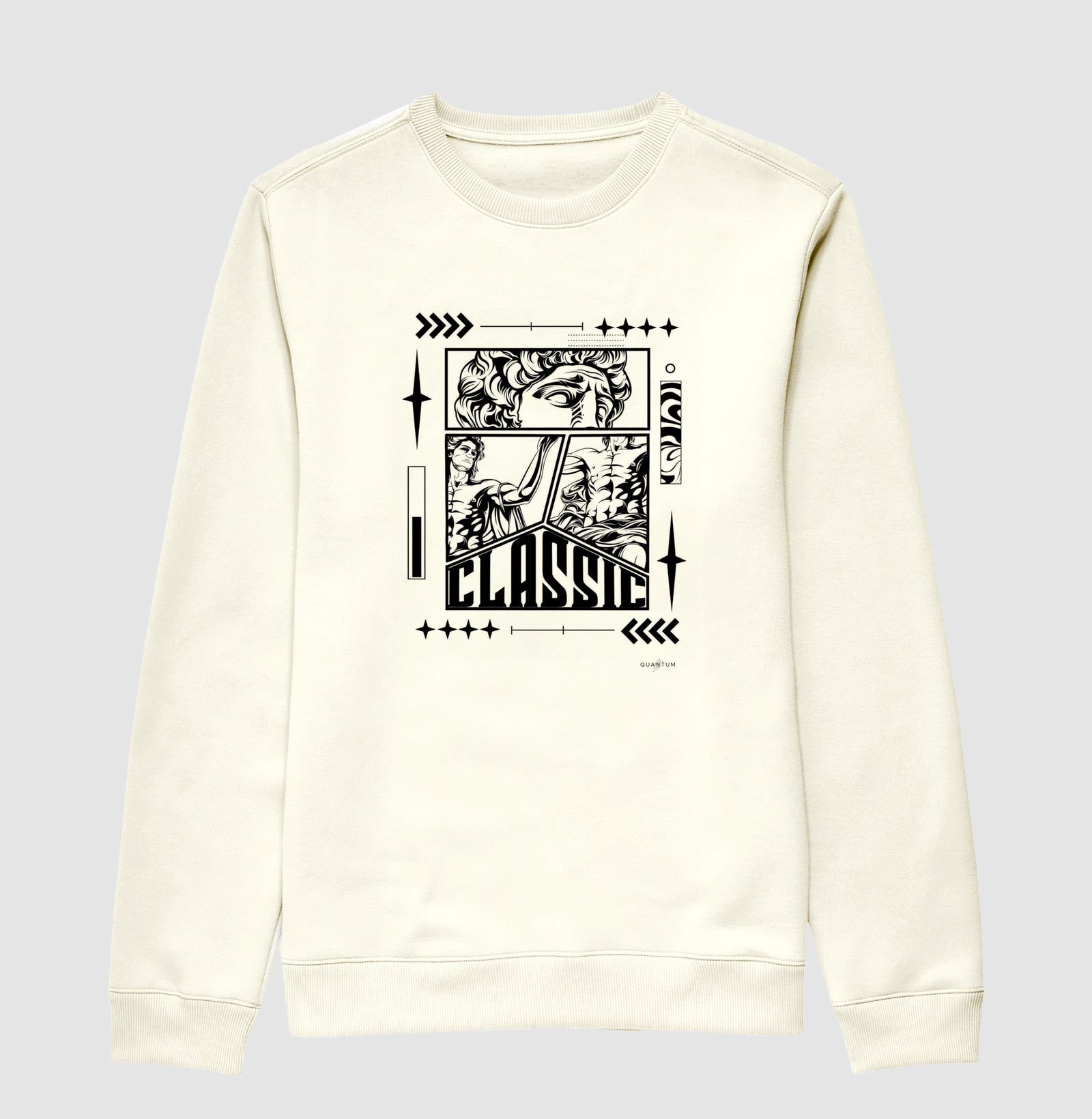 O Moletom Gola Careca "Classic" é a peça ideal para unir conforto e estilo em dias mais frios, trazendo um design que celebra a atemporalidade da arte. Ele oferece o aconchego necessário para o seu dia a dia, combinando a modelagem clássica do moletom com uma estampa sofisticada e cheia de atitude.