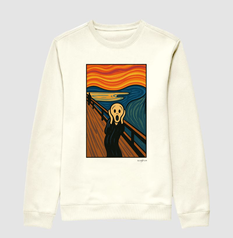 O Moletom Gola Careca "O Grito" é a peça ideal para unir conforto e estilo em dias mais frios, trazendo para o seu vestuário uma das obras de arte mais icônicas do Expressionismo. Oferece o aconchego necessário para o seu dia a dia, com uma estampa visualmente impactante e culturalmente rica.
